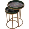 Elegant and useful set of two nesting tables with removable trays, mounted on gold painted metal frames. This famous Laura Ashley floral design is set against a rich green background with gold detailing on the tray edges.